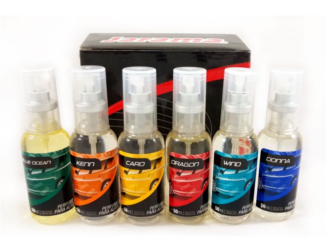 PERFUME PARA AUTOS BOTELLAS X 50 CM3 C/ATOMIZADOR - CJ x 72 - ( 6 PACKS x 12 ) JARAMA